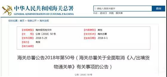 海關全面取消《入/出境貨物通關單》詳情>>
